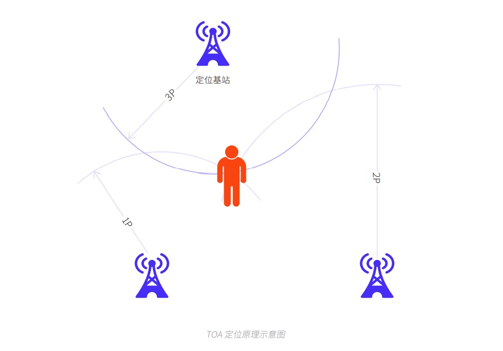 TOF 通過分別測量移動終端與三個或更多基站之間信號的傳播時間來定位,它采用了圓周定位