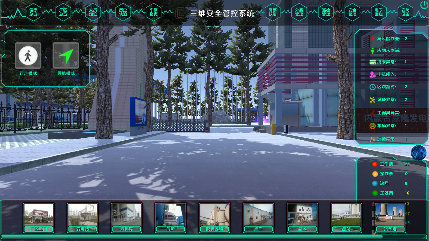 系統把整個廠區劃分為N個作業區域,根據作業區域安全風險的高低做出相應的等級劃分,便于重點區域重點監控。根據各人員的工作崗位和工作內容進行區域授權,對人員闖入未授權區域系統立即報警。同時系統會接入ERP中的兩票、缺陷信息,根據兩票、缺陷信息中的區域位置及設備的KKS編碼,把兩票、缺陷作業劃分到相應的區域中,實現兩票、缺陷及作業人員分區域列表展現和三維展現,方便查看與管理。